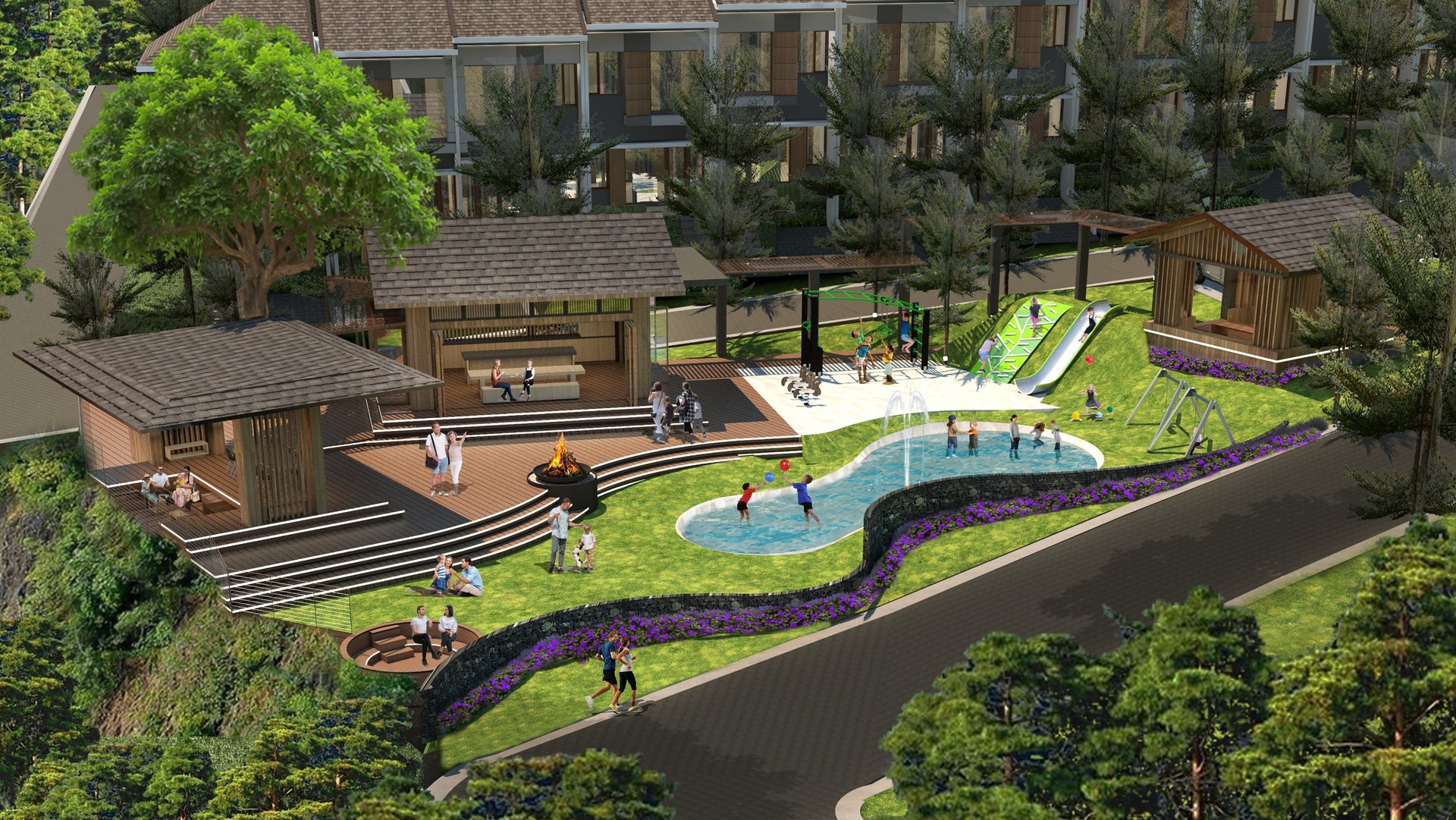 Kehadiran fasilitas ini membuat lingkungan perumahan terasa lebih hidup dan mendukung kebersamaan keluarga, baik di hari kerja maupun di akhir pekan.